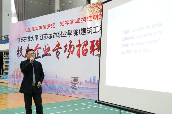 校友联谊会常务理事单位尚昇建设集团有限公司执行副总,2002级校友刁小波和中民筑友科技集团江苏公司总经理,90级校友夏卫忠分别进行了企业宣讲。