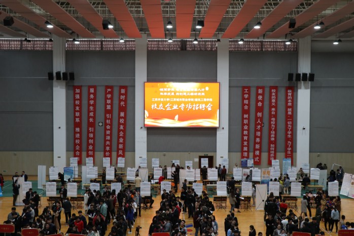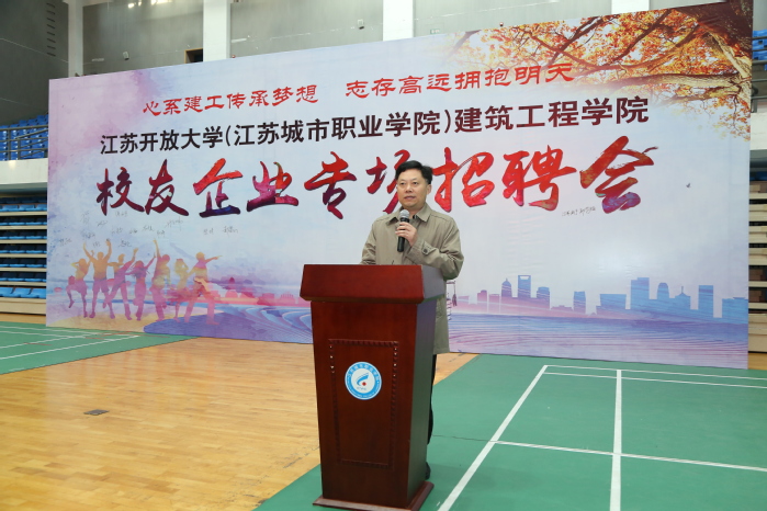 上午9时,建筑工程学院第二届校友返校日暨校友专场招聘会在我校体艺馆举行。会议由建筑工程学院党总支副书记章琼主持,本次返校日的主题为:校友企业或校友所在企业专场招聘会及校友企业风采展示。出席此次招聘会人员有校党委常委、学院联系副校长吴光林教授,校学工处处长季海菊教授,学院党总支书记、副院长俞金元,副院长许士斌,建工学院老师和大二大三同学。