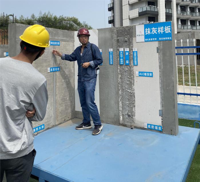 为做好此次实训,建筑工程技术专业教师寇立亚和饶文昌首先给学生做安全教育,明确了本次实训的目的和任务。在一期项目现场,实训楼、食堂、学生宿舍的样板房和施工样板展示区,基建处处长王卫、时庆龙科长介绍工程的概况,与同学们分别就施工场地平面布置、标准层结构构造以及分部分项工程施工工艺等进行针对性讲解,并宣传了“低碳环保,绿色发展”的理念等。