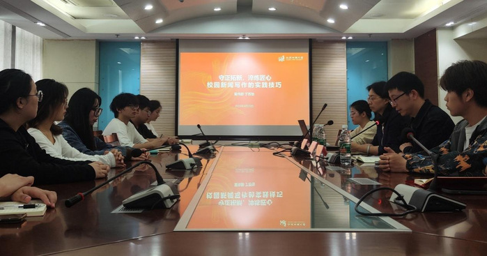 丁苏怡老师以“如何培养新闻写作的逻辑思维”“如何丰茂新闻语言的葱郁枝叶”“如何做好新闻稿件的自我审校”为核心内容,结合大量生动的新闻案例,将教学与实践相结合,深入浅出地为学生们讲解了新闻写作的特点、要点,并分享了一系列实用的写作技巧和思路。