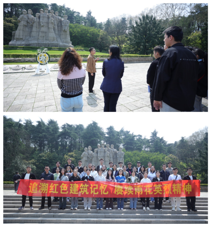 为学习贯彻习近平总书记关于缅怀先烈、崇尚英雄的一系列重要论述,清明之际,学院学生入党积极分子、学生团员代表跟随学院第二党支部赴雨花台烈士陵园开展“追溯红色建筑记忆,赓续雨花英烈精神”清明祭英烈活动,通过实地参观、现场教学和集体宣誓等多种形式深切缅怀革命烈士丰功伟绩,传承发扬红色基因,进一步坚定青年的理想信念,激发大家的爱国热情和报国之志。