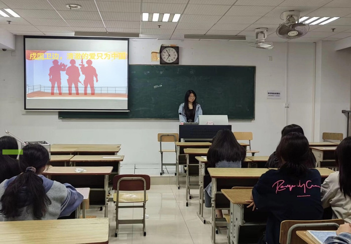 戍国卫边,是一种神圣的使命和担当。23级室内设计一班团支书吴庆雪带领同学学习贯彻习近平总书记关于强边固防的重要论述,讲述戍边英雄陈祥榕、肖思远等人不让国土、保家卫国的事迹,最后她号召同学们向那些戍国卫边的英雄们致敬,学习他们的爱国精神和奉献精神,为实现中华民族伟大复兴的中国梦而努力奋斗。