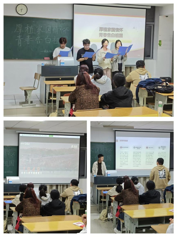 十月,建筑工程学院团总支以新中国成立75周年为契机,组织团员和青年学习党史、新中国史,以“厚植家国情怀,青春告白祖国”“民族大团结,共画同心圆”“志同道合携手行,命运与共创未来”“坚定理想信念,放飞青春梦想”为主题,组织各班级团支部开展了形式多样、丰富多彩的主题团日活动。
