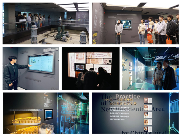 最后一站,师生们踏入了颐和路数字展示馆,开启了一场科技与文化的交融之旅。颐和路数字展示馆以颐和路生活用水处理中心为切入点,揭开了南京城百年间街区规划、环保理念和人文风貌的绚丽篇章。借助先进的数字沉浸式技术,大家仿佛穿越时空,不仅亲眼见证了颐和路的历史变迁,体会其背后的人文故事,还切身感受到科技如何以前所未有的方式推动城市的现代化发展。高职学生向、开放学长和校友企业代表请教实际问题,校友们慷慨分享了自己的行业见解与经验;院学生会主席团张展瑞同学的讲解,让师生们对颐和路的文化底蕴和新时代发展有了更加深入的认识,也让大家对科技赋能城市未来充满了无限遐想与期待。