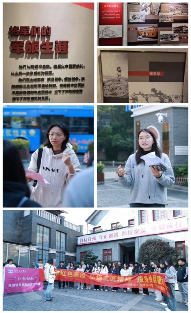 首站,师生们来到了颐和路社区将军馆,这座全国唯一的社区将军馆,见证了64位将军的辉煌历程。通过丰富的图片、文物和视频展示,院学生会主席团徐玉洁同学为大家生动讲述了将军们的英勇事迹和战斗经历。将军们的晚年生活展区,更是传递出不忘初心、牢记使命的崇高精神,激励着每一位师生铭记历史,勇担使命。