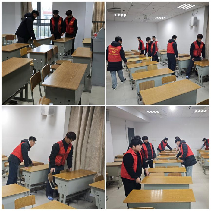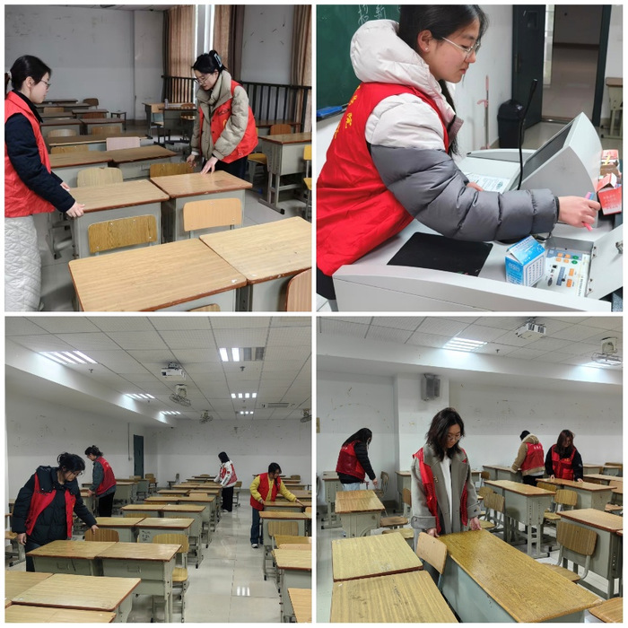完成宿舍楼道的清洁任务后,志愿者们又马不停蹄地前往教学楼进行打扫。他们对教学楼2楼、4楼和5楼的大部分教室进行了细致打扫。整理讲台桌面杂物,课桌肚里垃圾清理,将课桌椅摆放整齐有序,为同学们提供了更加良好的学习环境。