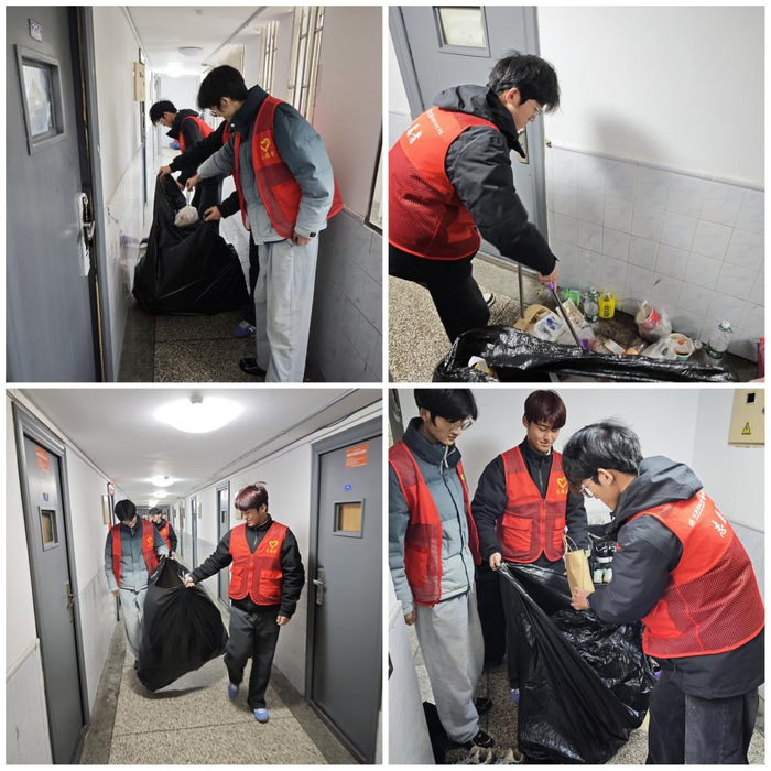 活动当天,志愿者们早早集结于校园小花园,经过详细的任务分工和工作培训后,迅速投入到校园环境美化的工作中。他们分为两组,分别前往男生三栋宿舍和女生五栋宿舍,对宿舍楼道进行全面清洁。手持扫帚、拖把等清洁工具,志愿者们细心清扫每一个角落,为同学们营造了一个干净、整洁的居住环境。大家还在行动中积极倡导同学们共同爱护宿舍楼道环境,管理好自己宿舍门口的“一平方”卫生,共同维护校园的美好。