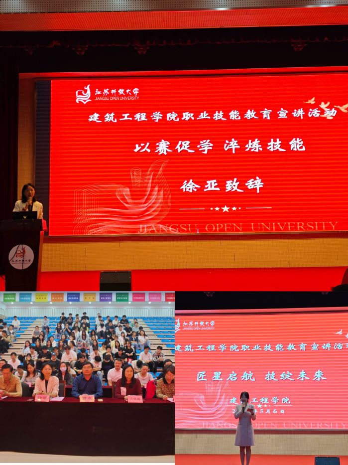 5月6日晚,建筑工程学院在应天校区体艺馆406举办“匠星启航 技绽未来”职业技能教育宣讲活动。学院党总支书记曹永、校关工委余宁老师、副书记徐亚、副院长火映霞、黎雅乐、技能大赛指导教师代表、辅导员老师代表、学生获奖代表、2024级全体学生共同参与。