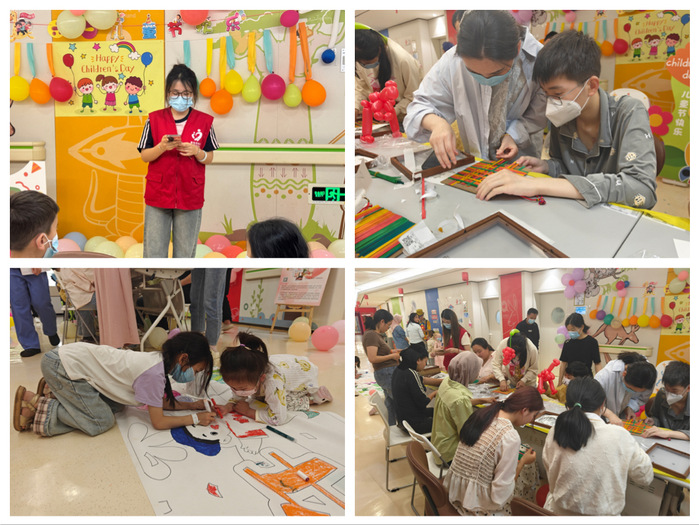 在特别设计的“端午文化彩绘”环节,五米长的主题画卷铺展成创意舞台。患儿们手持画笔,或勾勒赛龙舟的激昂场景,或描绘心中的童话城堡,将童真想象融入色彩。志愿者团队结合建筑专业特色,创新设计“建筑+非遗”体验活动:用榫卯结构原理制作竹编画、以立体剪裁手法缝制艾草香囊、通过几何编织技法制作五彩绳。一位患儿举着亲手制作的香囊兴奋地说:“我要把它挂在床头,让病房变成有香味的家!”