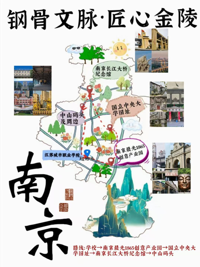 本次大赛紧扣“解码金陵城市基因库”主题,参赛团队围绕南京特色建筑(红色旧址、民国风貌、工业遗产等)设计2-3小时实践路线,将思政教育融入建筑观察、历史解读与互动体验。参赛作品需包含路线图、多媒体资料包及设计说明书,通过“行走+研学+创作”模式,实现“知史明志、知行合一、文化自信”的育人目标。