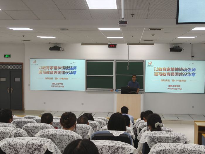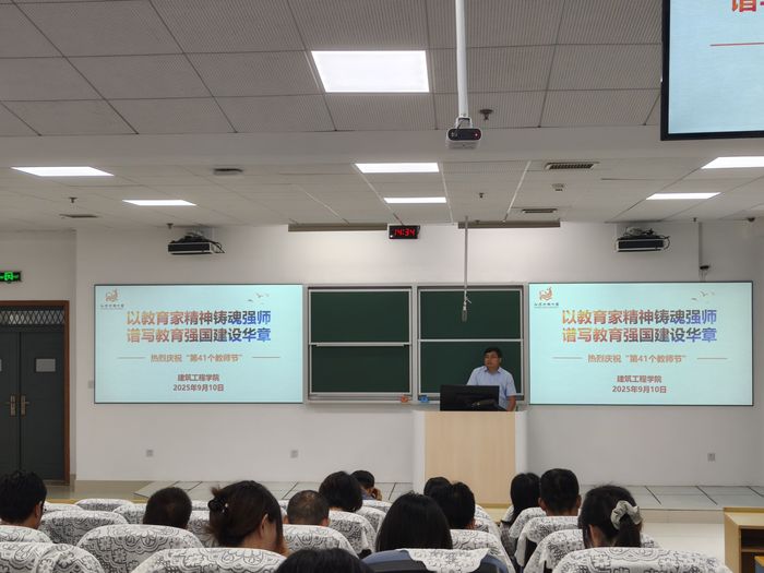9月10日,建筑工程学院举办主题为“以教育家精神铸魂强师,谱写教育强国建设华章” 的第41个教师节庆祝活动。校党委常委、副校长杭祝洪参加活动并讲话。本次活动分为两个阶段,第一阶段为学院庆祝大会,第二阶段分系部开展座谈会。建筑工程学院全体教职工参加活动。