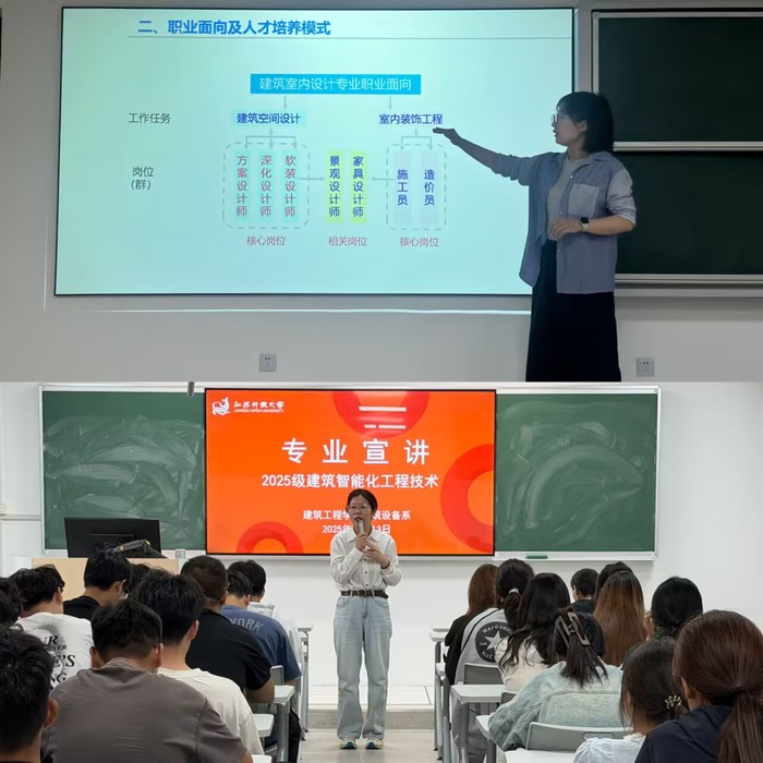 建筑智能化工程技术专业负责人周玉娟老师以生动的案例开启专业介绍。周老师指出,现代建筑正从传统的遮蔽空间进化为具有感知、分析、决策能力的智慧体,因此本专业将培养学生掌握楼宇自动化和安全防范等核心技能。毕业生将在智能建筑系统的施工、养护等方面发挥重要作用。