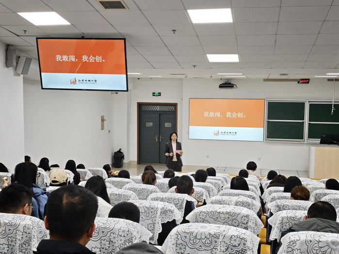 苏海花老师则以《以赛促教,以赛促学,以赛促创——创新创业大赛指导实践与思考》为题,结合其团队参赛经历,从项目发展历程、选题策略、跨学科协作、实战打磨技巧到师生协同创新等方面展开深度分享,她通过对比职教赛道与红旅赛道的差异,指出红旅赛道和调研报告更强调“实践温度”与“社会情怀”,强调师生共同投入,做好实践记录,善用社会实践活动。