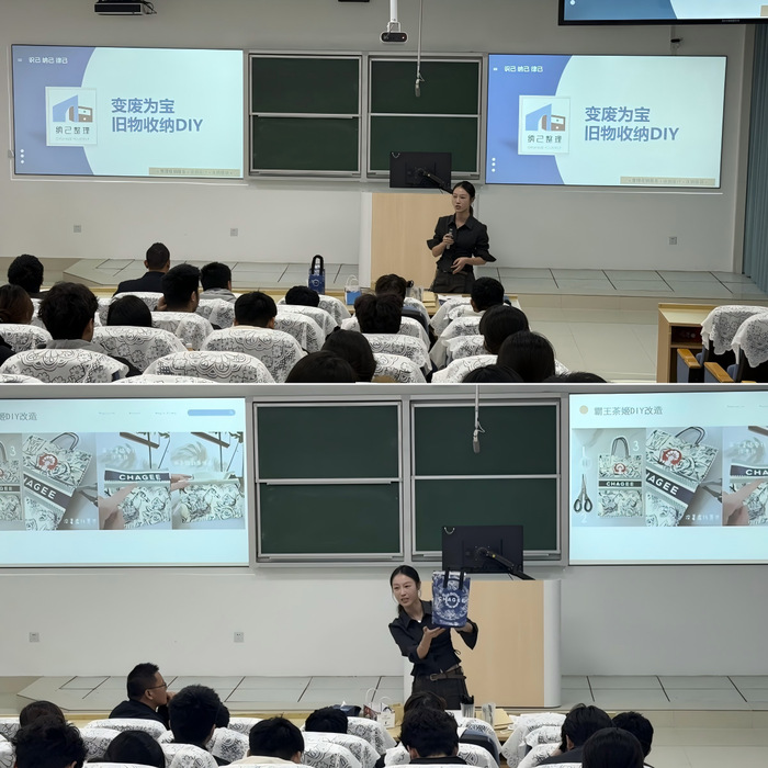 为深入推进文明宿舍创建和样板宿舍打造,增强学生科学收纳习惯与环保生活理念,11月21日中午,建筑工程学院在教学楼203阶梯教室举办“变废为宝-旧物收纳DIY暨宿舍长专项培训”。活动特邀中国CALO认证一级整理师刘玥担任主讲, 2024、2025级全体宿舍长参加。活动由院学工办主任江胜锋主持。