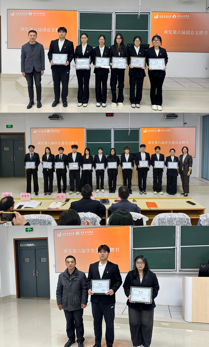 在表彰环节,徐亚、江胜锋和宋智华共同为第六届学生会主席团成员及各部门总干事颁发聘书,对他们在推动校园文化建设、丰富四个课堂活动中的突出贡献给予积极评价。