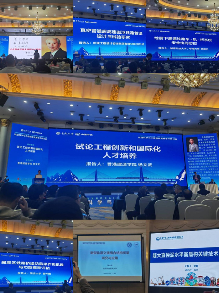 2025年11月29日至30日,备受行业瞩目的铁道科学与工程创新发展学术研讨会暨中国可持续发展研究会2025年“AI+轨道交通可持续发展”学术年会在湖南长沙盛大召开。此次研讨会由中南大学、中国中铁股份有限公司联合主办,汇聚了全球轨道交通领域的众多权威专家、学者以及一线工程建设者。建筑工程学院院长助理黎雅乐带队,携城市轨道交通工程技术专业骨干教师徐玉芬、于艳春、陈鑫参会学习,旨在汲取前沿理念与先进经验,为专业建设筑牢坚实根基。