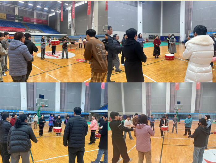 为保障活动顺利开展,分工会提前统筹规划,充分考量教职工的年龄、性别及身体状况,精心设置了六大特色项目,涵盖“滚铁环”“毽子飞扬”“定点投篮”“跳绳大赛”“定点投壶”“开心套圈”,并新增团队协作核心项目“同心鼓”。其中,“同心鼓”项目以10人一组为单位,队员们需同心协力拉住鼓身四周的绳索,通过精准配合控制鼓面起伏,让小球在鼓上持续弹跳,既考验团队的同步协调性,又充满互动趣味,成为本次运动会的一大亮点。