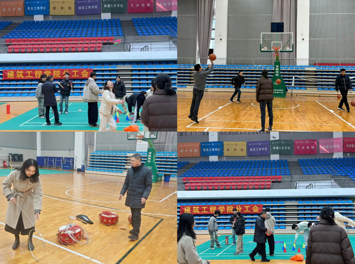 为丰富教职工课余生活,增强身体素质,营造团结协作、积极向上的校园氛围,切实将“每天锻炼一小时,健康工作四十年,幸福生活一辈子”的健康理念落到实处,12月17日中午 ,建筑工程学院分工会在体艺馆顺利举办冬季趣味运动会,全院教职工踊跃参与,共享运动乐趣。