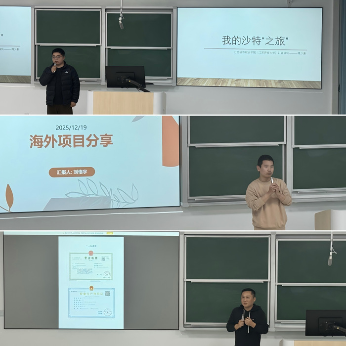 为深化“一带一路”人才培育实践,拓宽建筑学子国际化就业通道,12月19日下午,建筑工程学院在教学楼203教室隆重举办“一带一路”阿联酋项目企业宣讲会。学院院长侯新宇、党总支副书记徐亚,江苏新旺宁土木工程有限公司项目经理王海文出席会议,特邀沙特项目历练归来的校友傅少豪、刘恪宇作专题分享,23级、24级60余名学生代表到场聆听,现场互动热烈、掌声不断。