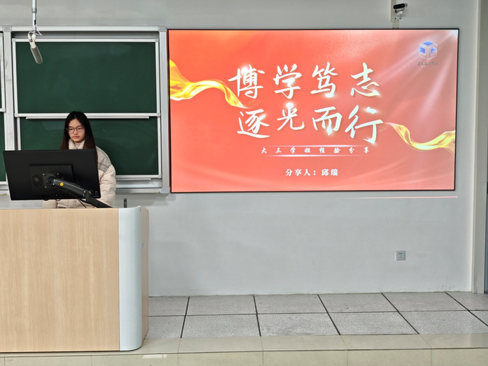 邱瑞学姐采用模块化分享模式,从“自我定位—政治追求—学业规划—学生工作—竞赛突破”五大模块展开。入党篇中,她以预备党员成长历程为样本,揭示了“思想入党—行动入党—组织入党”的递进式发展逻辑;学业篇提出“时间管理矩阵法”,强调了“态度决定高度”,示范了如何通过四象限法则平衡专业学习与学生工作;竞赛篇则聚焦“挑战杯”“建行杯”等赛事,总结出“选题创新—团队协作—成果转化”的备赛三要素,鼓励学员勇于挑战自我,在竞争中提升综合素养。