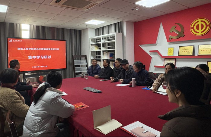 2026年1月13日,建筑工程学院建筑设备系党支部在应天综合楼1019会议室开展了深入学习贯彻党的二十届四中全会精神集中学习研讨会暨建筑设备系2026年度工作计划研讨会。会议由建筑设备系党支部书记、建筑设备系主任韦定兵主持,支部党员及建筑设备系全体教职工参加会议。