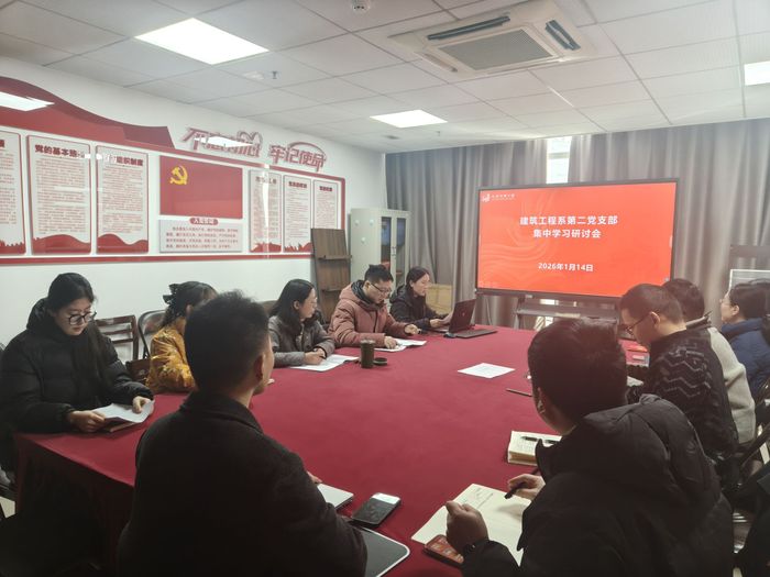 1月14日,建筑工程系第二党支部在应天校区综合楼1019会议室召开党支部集中学习研讨会,专题学习“深入学习领会党的二十届四中全会精神”。会议由党支部书记张帆主持。徐亚、汪博恺两位同志作重点发言,江胜锋、金帅男两位同志作交流发言。党支部全体党员参加会议。