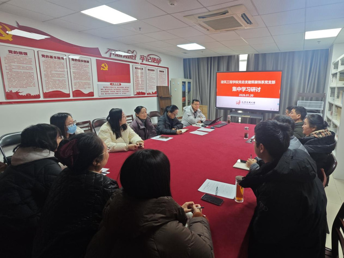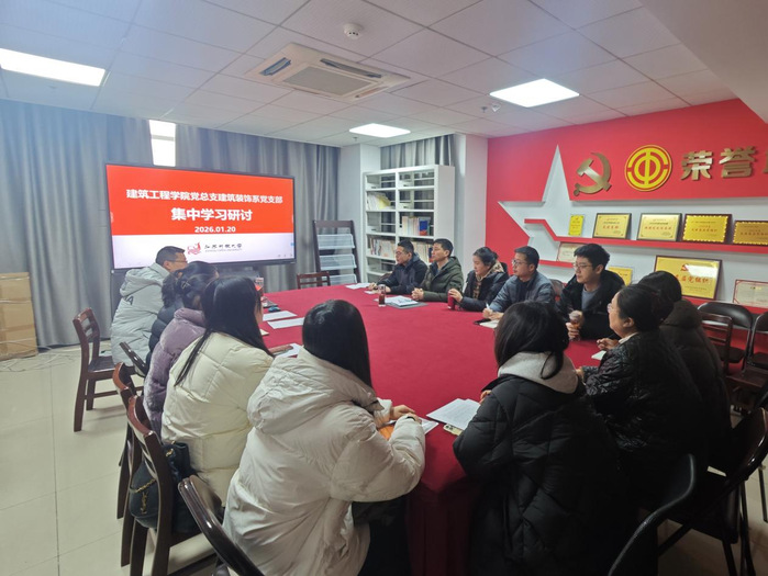 2026年1月20日,建筑工程学院建筑装饰系党支部在综合楼1019会议室组织开展了党的二十届四中全会精神集中学习研讨会。会议由建筑装饰系党支部书记、建筑装饰系主任曹阳主持,支部全体党员及装饰系全体教师参加研讨。