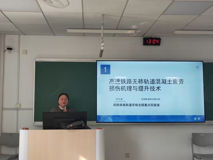分享会上,黎雅乐从“聚焦前沿、把握行业脉搏”“对标需求、重构专业建设路径”“凝聚共识、共绘发展蓝图”三个方面进行了整体介绍。徐玉芬重点汇报了轨道交通基础设施智能建造技术实践以及超大直径泥水平衡盾构关键技术及应用,并强调高职教育应注重培养兼具土木工程基础与智能技术应用能力的复合型人才。于艳春系统分享了绿色低碳土木工程材料方面的多项关键技术,包括高速铁路无砟轨道混凝土疲劳损伤机理与提升、混凝土大模型探索、钢渣掺合料稳定性控制、隧道喷射混凝土降回弹技术、严寒区固废基地聚物改良路基,以及低环境负荷型高性能碱激发混凝土制备等。陈鑫则结合教学实际,介绍了隐蔽病害检测、噪声监测与轨道波磨研究等方向的最新进展,指出这些内容不仅更新了教师自身的知识体系,也为课程案例库建设提供了前沿、实用的教学素材。