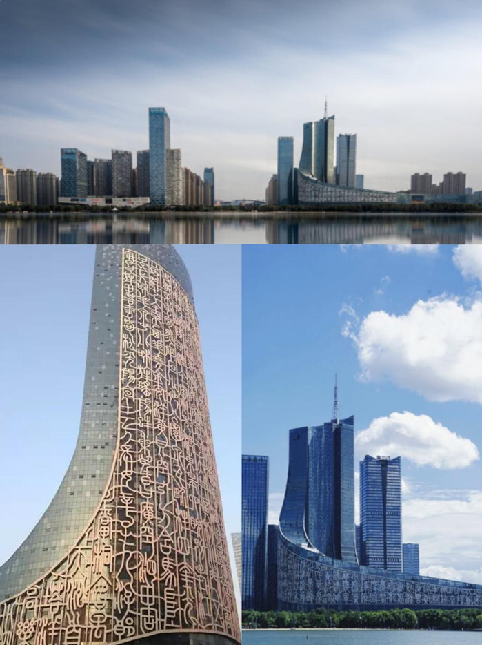 25建筑室内设计1班韦铭奕走进家乡合肥的天鹅湖畔的安徽广播电视台,感受这座安徽第一高楼、中国第一长楼2.7万㎡的篆字幕墙背后传统与现代的交融之美,领略现代建筑的科技与文化底蕴;