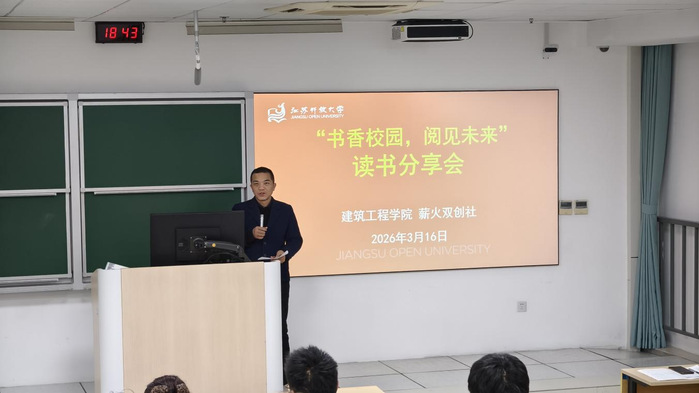 为深入推进 “书香校园” 建设,落实立德树人根本任务,持续深化学院创新创业育人工作,引导学生以阅读强根基、以思辨促成长,3月16日晚,建筑工程学院薪火双创社2026年第一期 “书香校园” 系列读书分享会在应天校区教学楼阶梯教室顺利举办,近50位学生参与,现场书香氤氲,思想碰撞的氛围热烈浓厚。